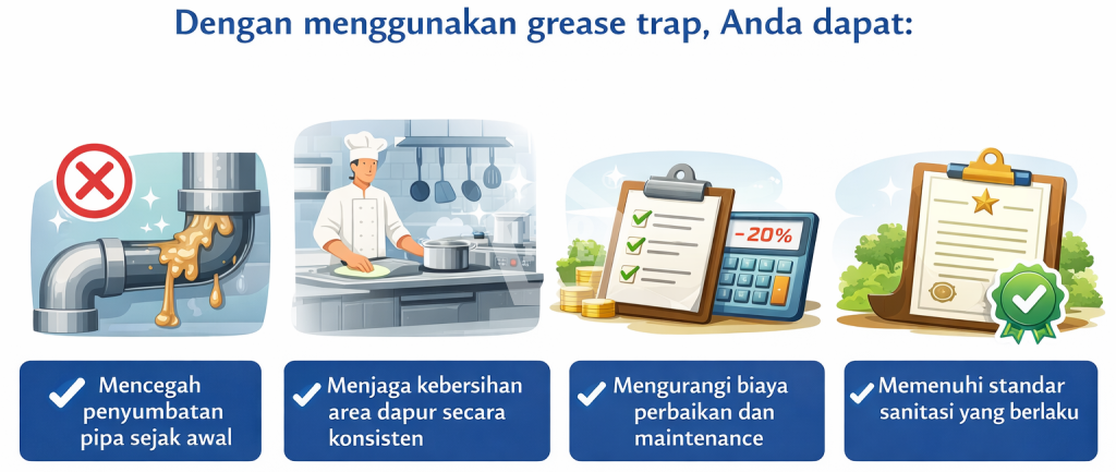 Oleh sebab itu, Anda harus memilih solusi grease trap yang mampu bekerja secara optimal dalam skala besar.